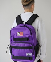 フロント上下にはスケートボードストラップが施され、メインポケットにはPC・タブレット用のクッションポケットも装備されております。